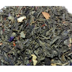 Té Verde con canela, cardamomo, jengibre, pimienta blanca, pimienta negra, pimienta de jamaica.